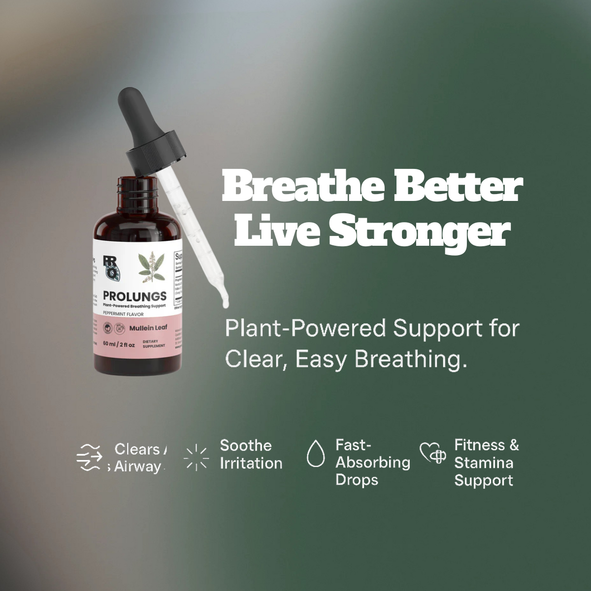 Respiratory & Lung Health Drops are a plant-based liquid supplement designed to support clear breathing, lung comfort, and respiratory wellness. The formula features Mullein Leaf Extract, Peppermint, and Menthol for a refreshing breathing experience.